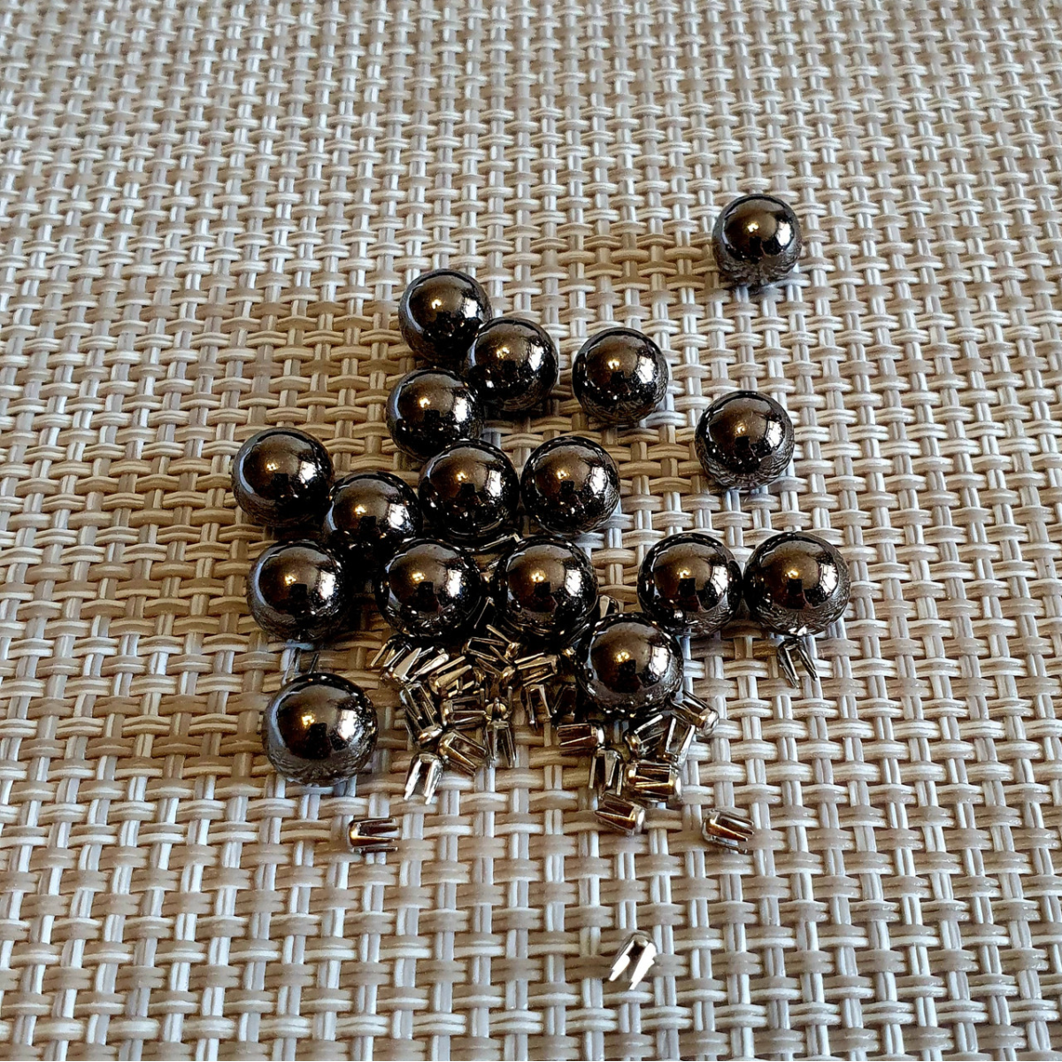 Прибивні перли встановлюються на виріб за допомогою ніжки, для цього знадобиться прес і матриця.