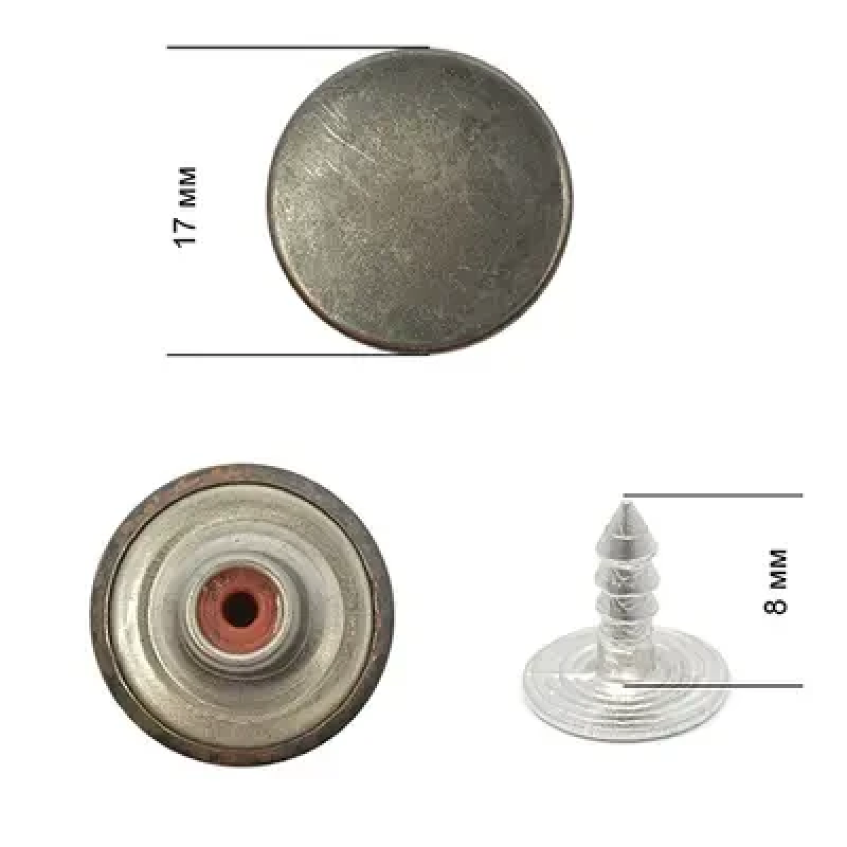 Гудзик для джинсів нержавіючий 17 мм гладкий (Темний Нікель) 100 шт